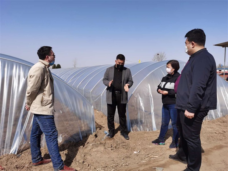 3.10沙河市有关部门到脱毒红薯苗基地共商红薯发展大计,河北金属农业科技有限公司总经理赵立江接待了工作人员,赵经理带他们参观了红薯大棚,讲解如何培育红薯苗,共同协商2020年的红薯规划。