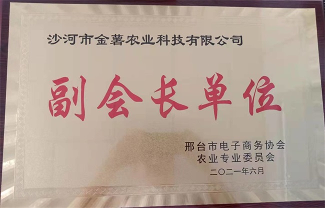 热烈祝贺沙河市金薯农业科技有限公司当选邢台市电子商务协会农业专业委员会副会长单位