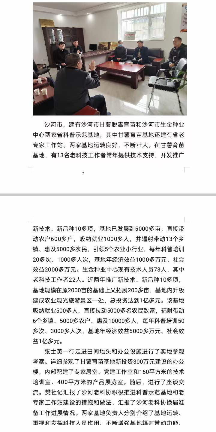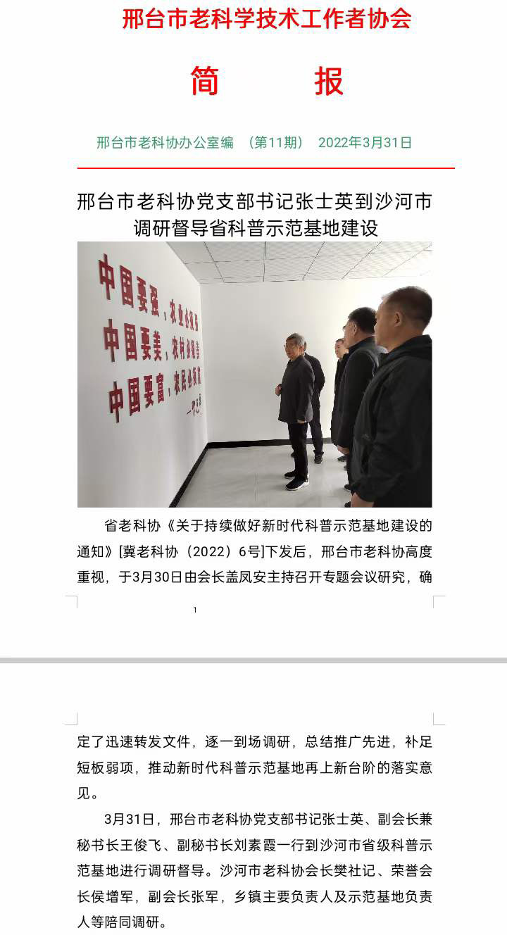 邢台市及沙河市老科协领导到沙河市农业技术推广协会检查督导省级科普示范基地和老专家工作站建设工作!!